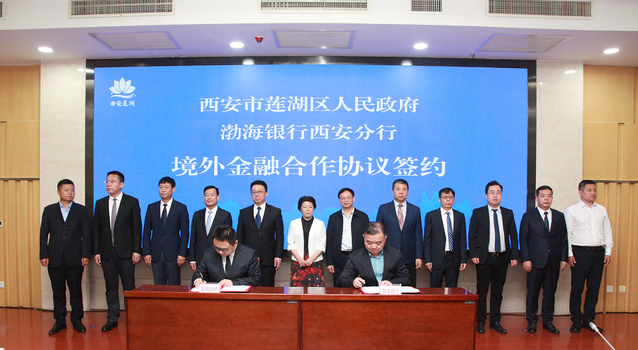 西安莲湖区政府与渤海银行西安分行签订境外金融合作协议(央广网发 李龙刚 摄)